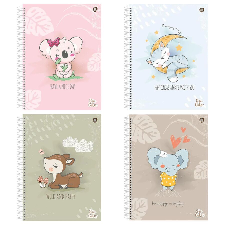 A capa desse modelo So Cute tem um visual super delicado, com um elefantinho fofo e detalhes que deixam o caderno leve e alegre. Esse estilo combina muito com crianças e adolescentes, mas também agrada quem ama papelaria cute e gosta de itens bonitos para estudar. Um caderno que você gosta de usar incentiva a manter as anotações em dia e melhora a constância.