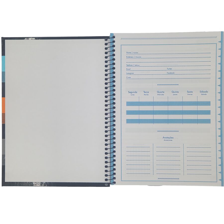 A capa do Caderno Flow Line 1 matéria possui um design forte e bem definido, que se destaca entre os cadernos tradicionais. Esse visual é perfeito para quem busca fugir de capas infantis ou neutras demais, sem abrir mão da elegância.