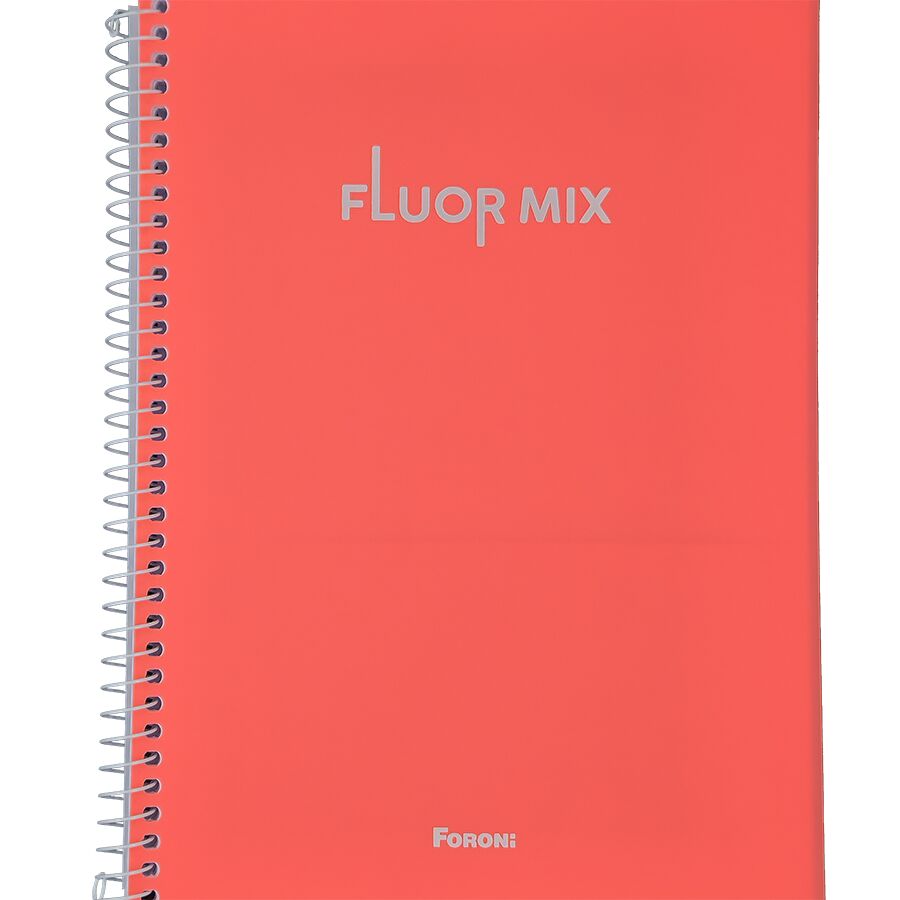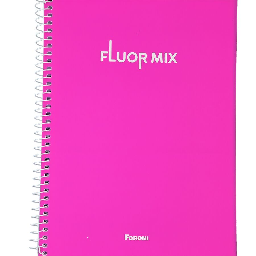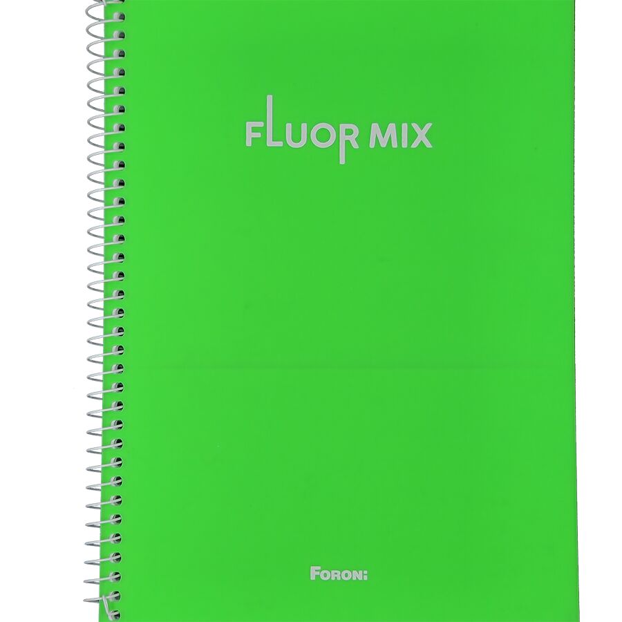 📸 Imagem (alt-text): Caderno Foroni Fluor Mix 1 Matéria com capa dura colorida e espiral branca em design fluorescente moderno.