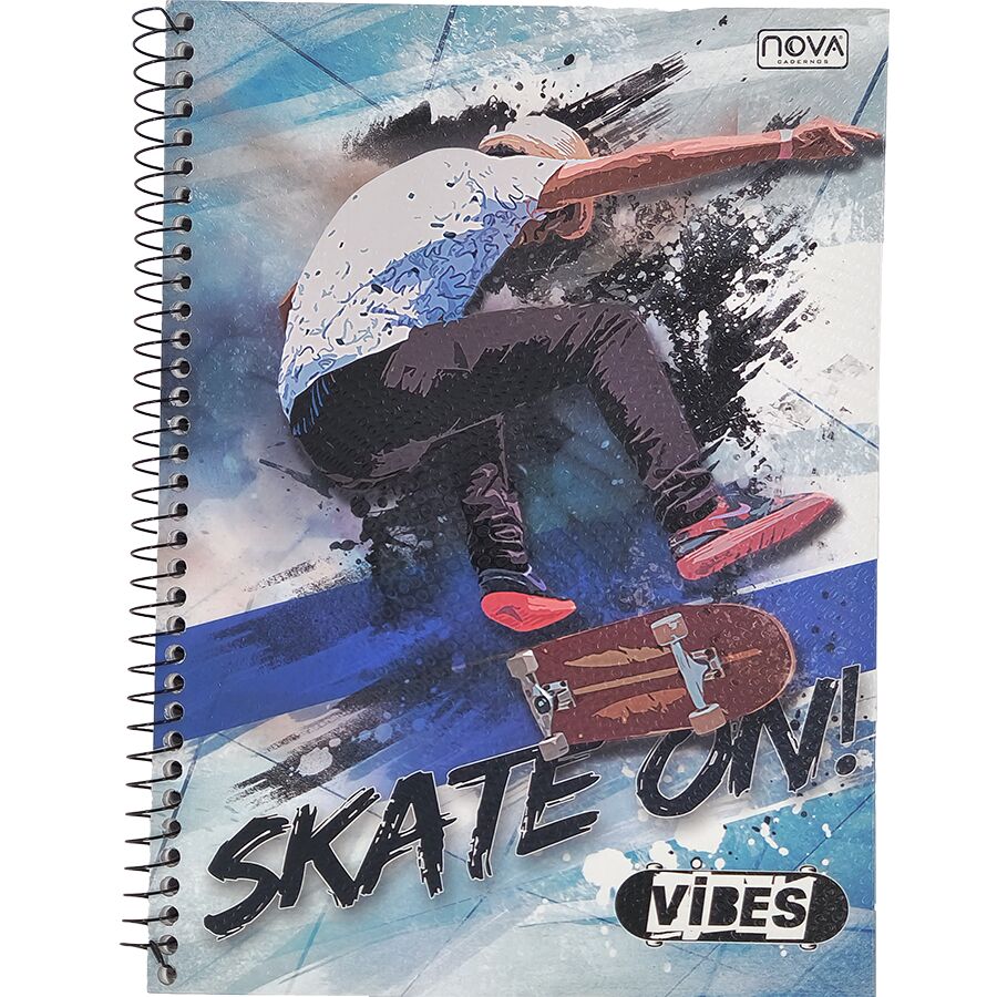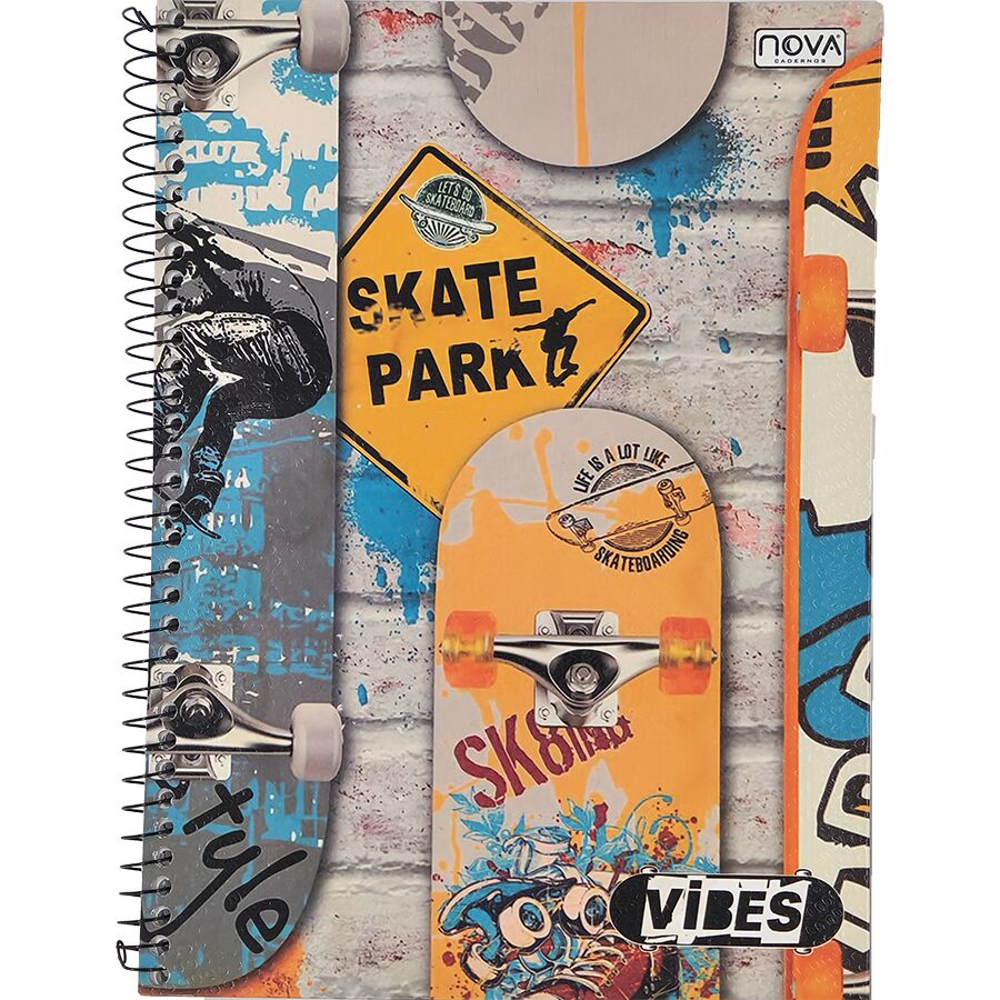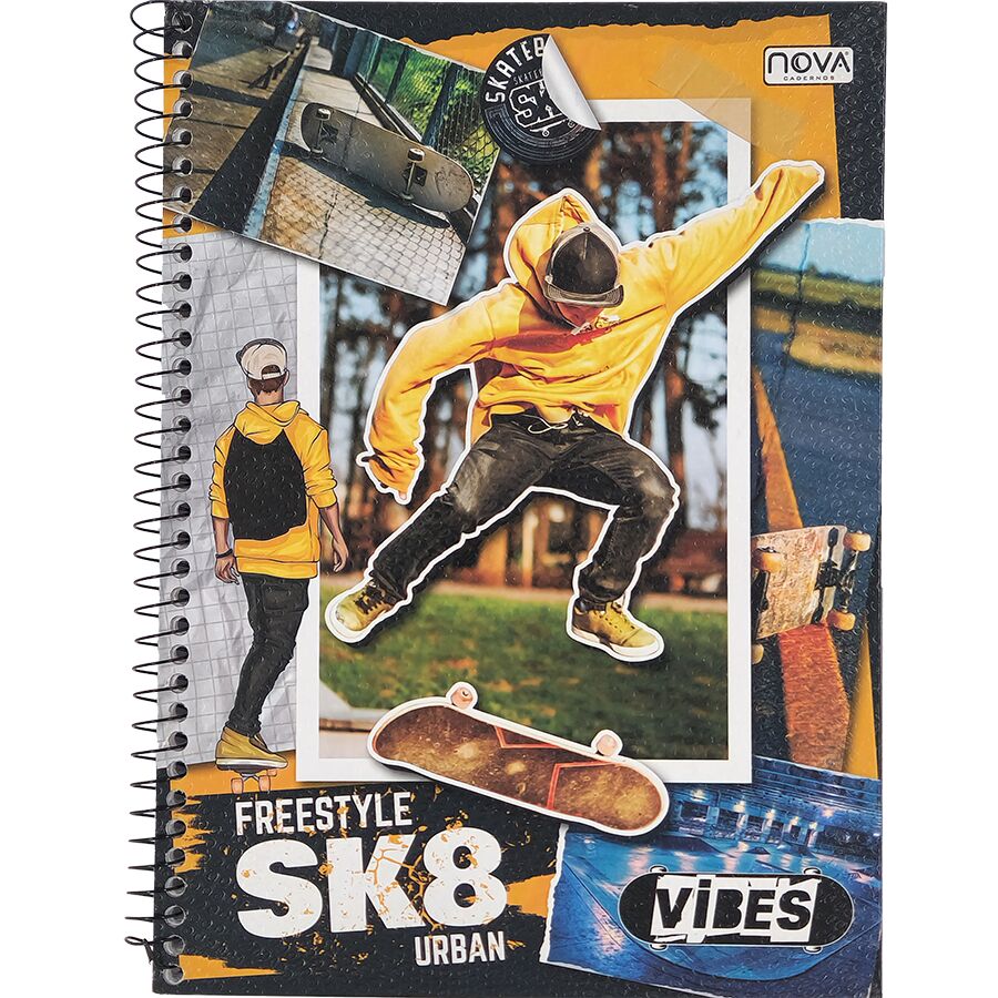 O Caderno Nova Vibes 1 matéria possui 80 folhas, formato universitário e visual moderno com inspiração urbana, sendo perfeito para estudantes que buscam praticidade, organização e estilo no dia a dia escolar.