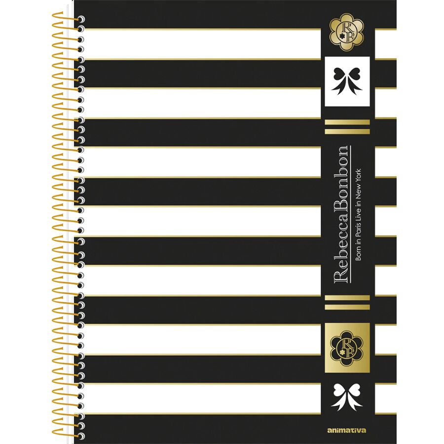 Organize o ano com o Caderno Rebecca BB 10 Matérias (160 folhas) da Animativa. Visual elegante em preto e branco, divisórias para 10 disciplinas e ideal para volta às aulas, escola e estudos. Compre na Papelaria Maranata!