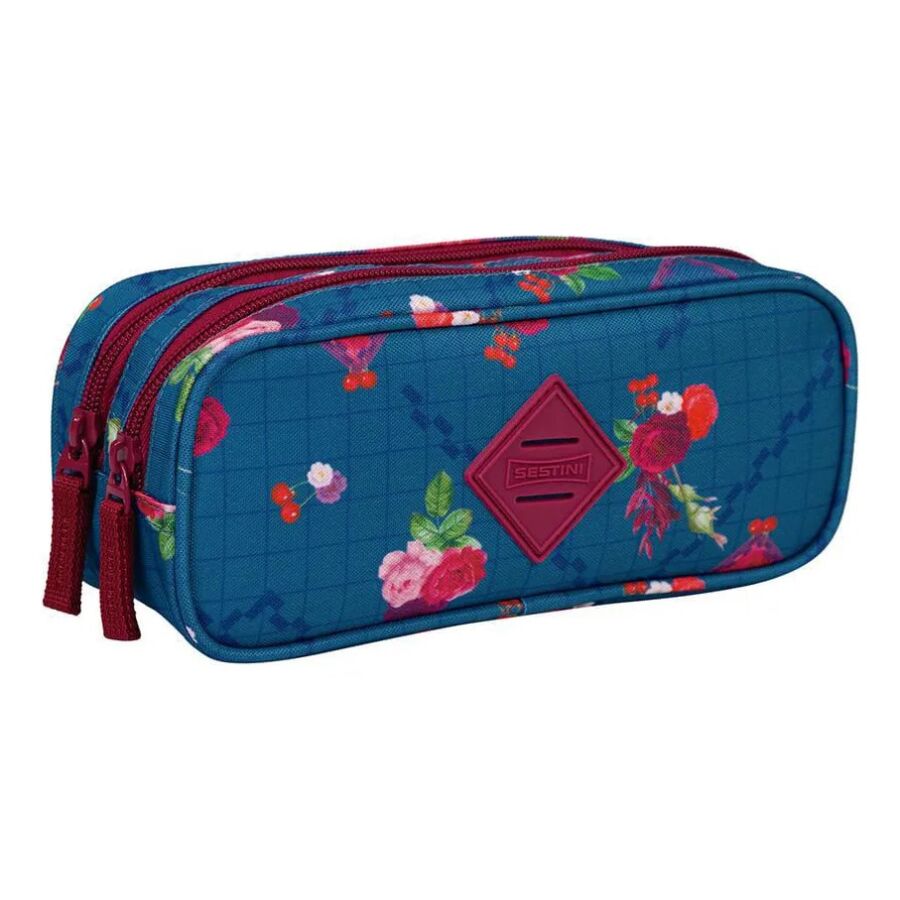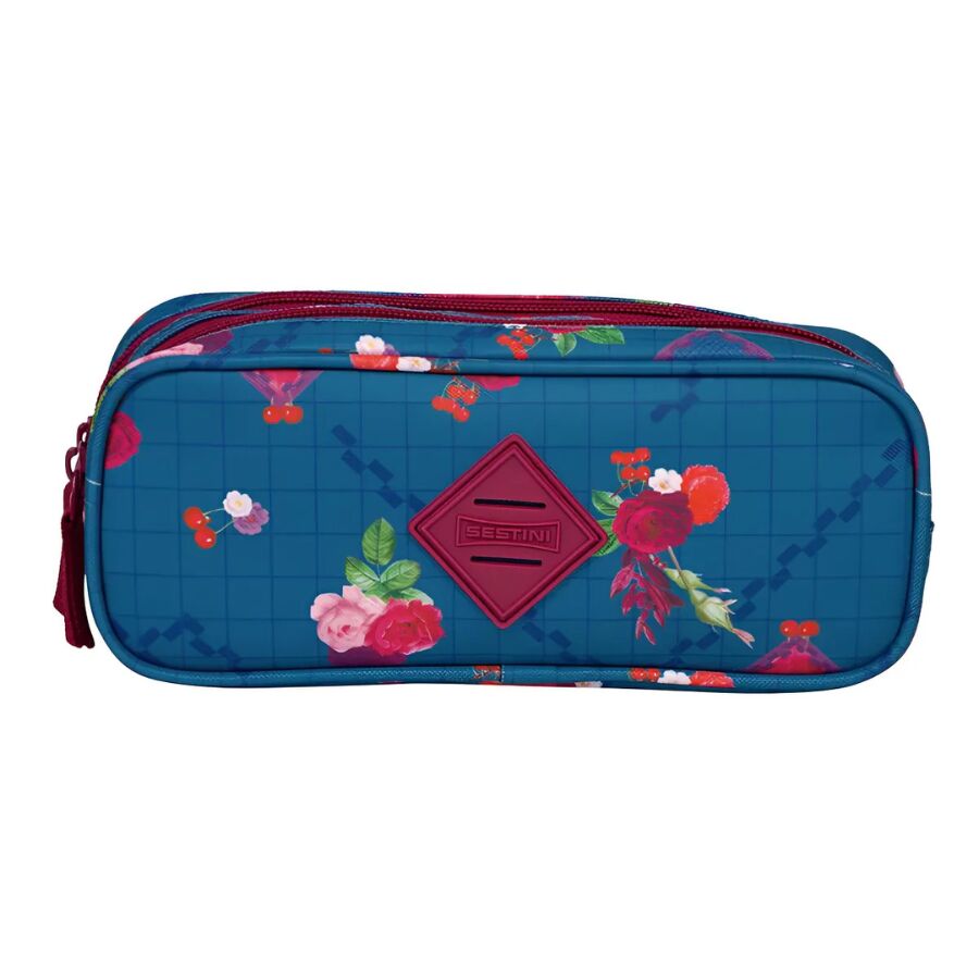 Estojo cerejas e rosas Sestini 075782-16 | Estojo Escolar com 2 Compartimentos