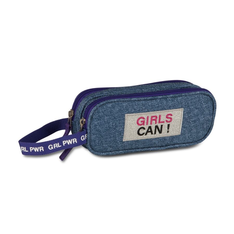 O Estojo Jeans Duplo Juvenil se destaca principalmente por sua temática de empoderamento feminino. A frase Girls Can! traz um simbolismo forte, inspirando confiança e reforçando a mensagem de que meninas podem realizar tudo o que desejarem.