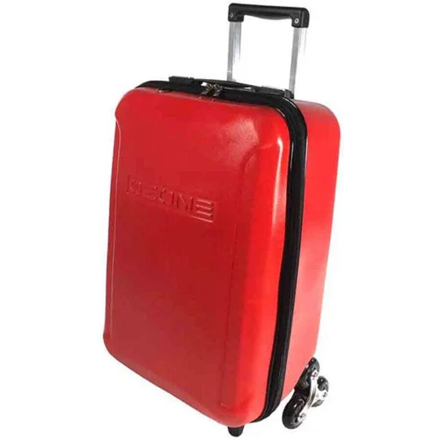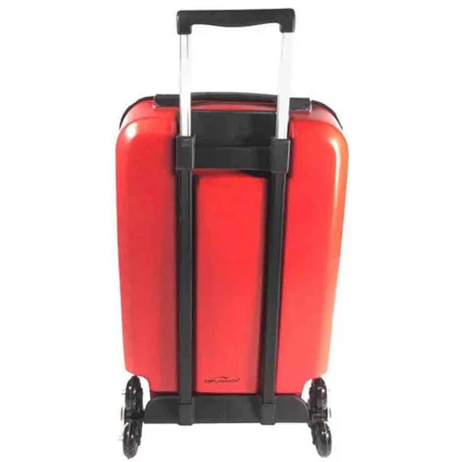Seu acabamento em vermelho vibrante transmite elegância e energia, destacando-se em meio às bagagens convencionais.