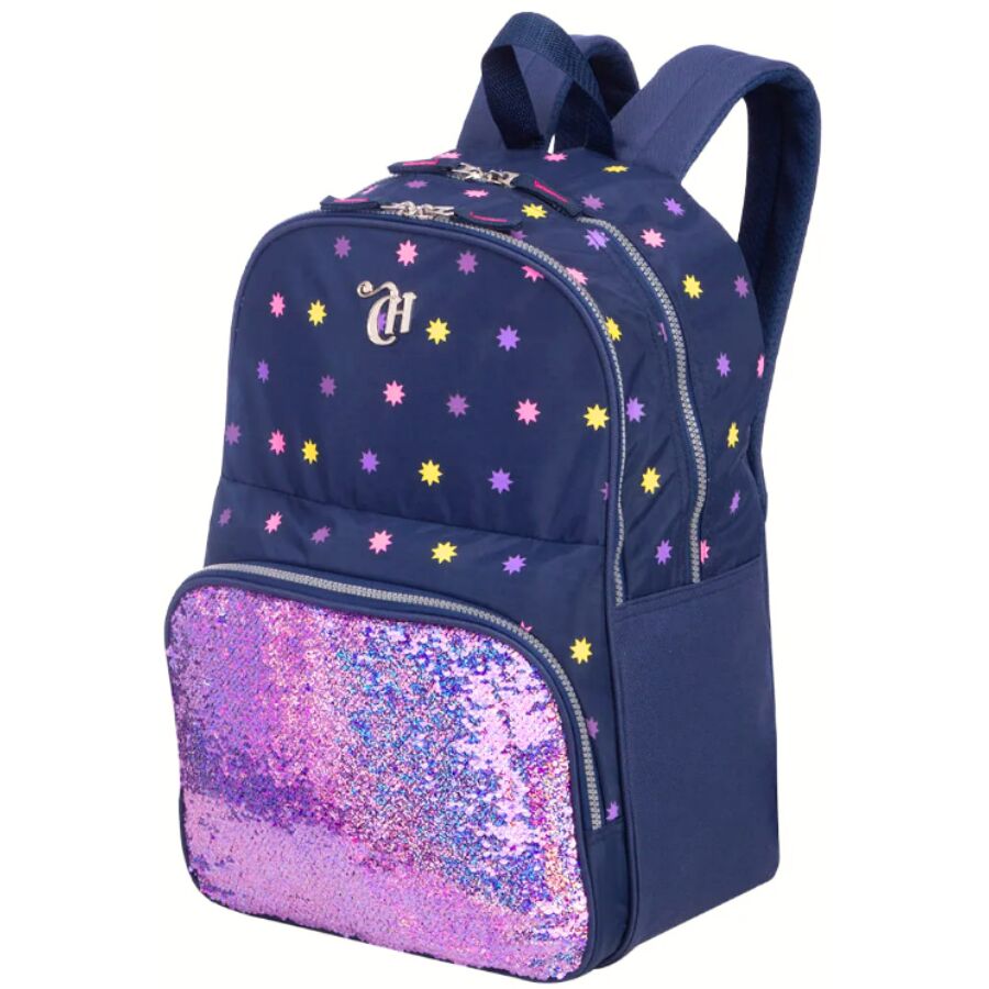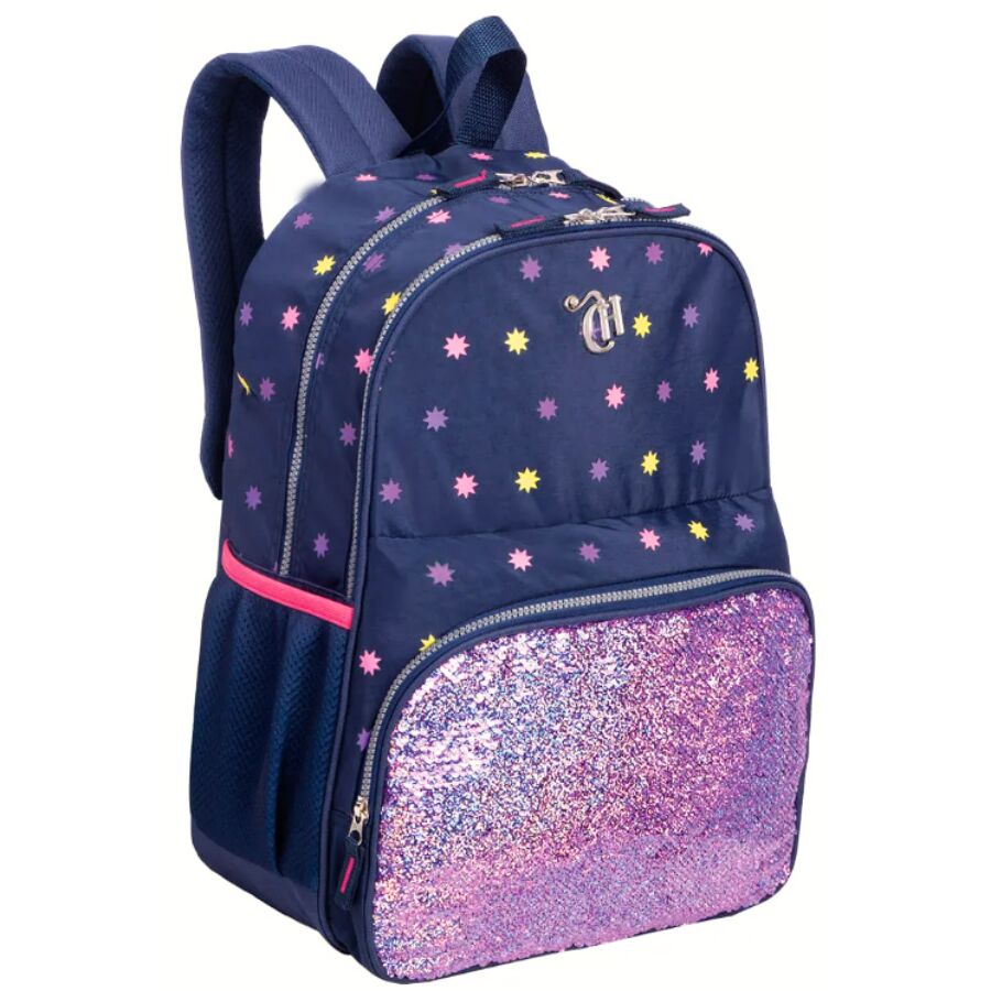 A mochila-capricho-estrelas-azul-sestinié feita para quem adora estar na moda. O bolso frontal em glitter traz um charme especial e deixa o visual ainda mais moderno e feminino.