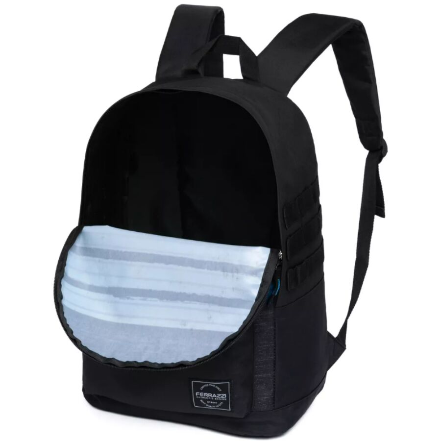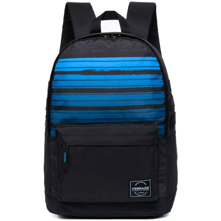 mochila Ferrazzi 0039 – Mochila Escolar Preta Reforçada e Moderna com Estampa Azul