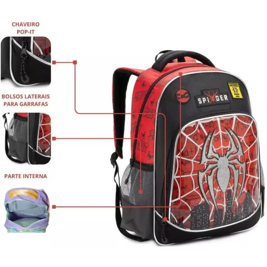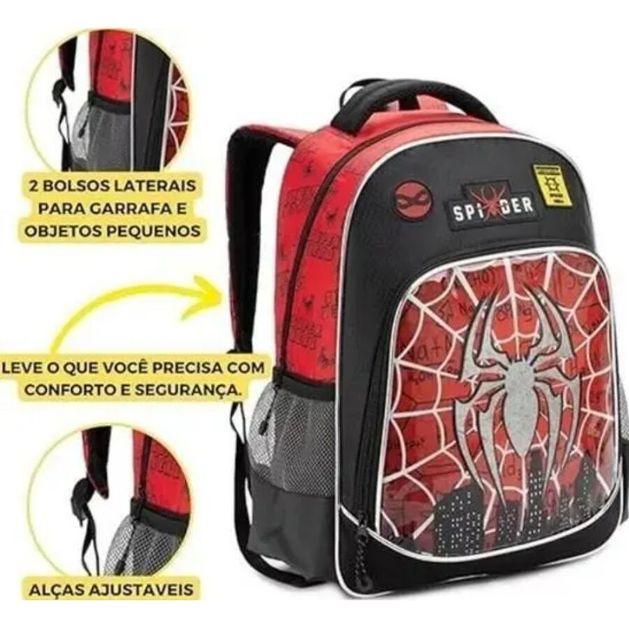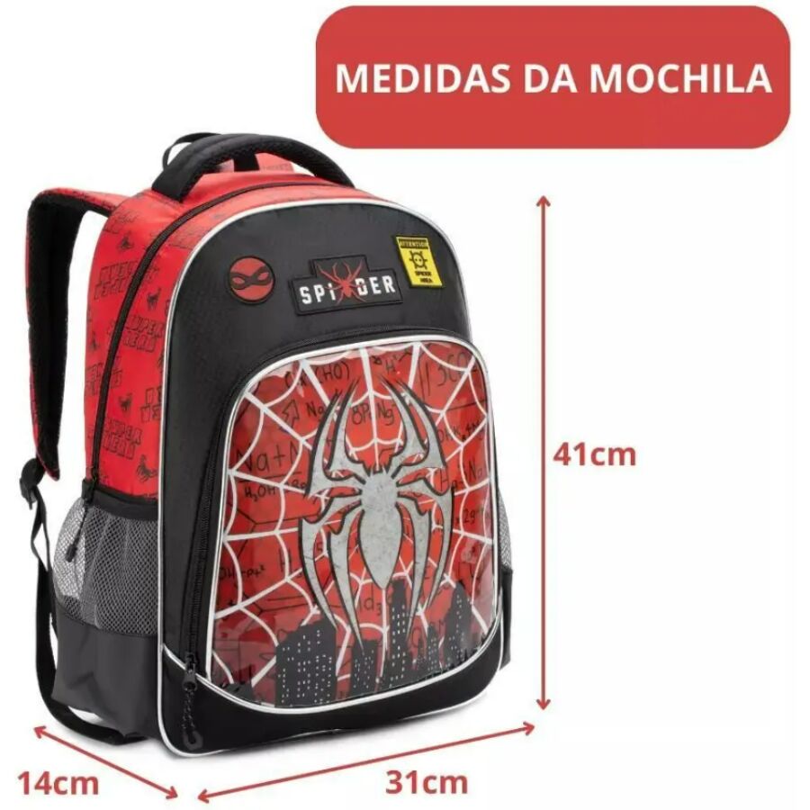 Um dos pontos mais admirados da mochila Homem Aranha DL14967 é seu design impactante. Com predominância de preto e vermelho, a estampa frontal apresenta uma enorme teia em destaque e o clássico símbolo da aranha, transmitindo a sensação de força e coragem que o personagem representa.
