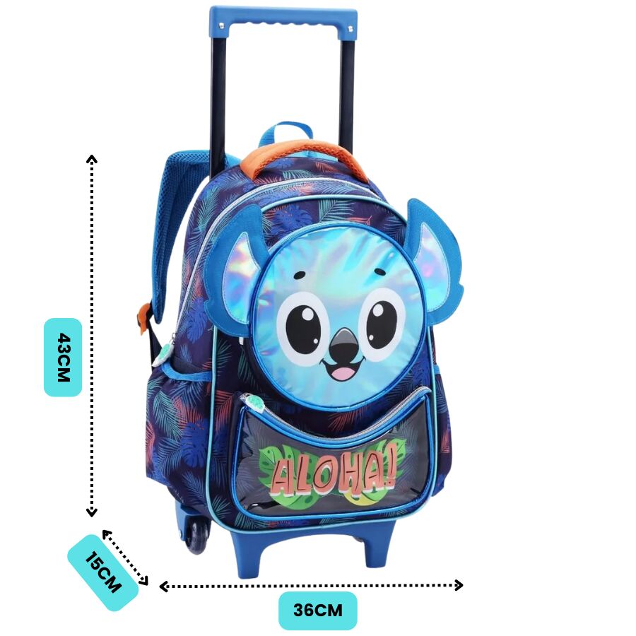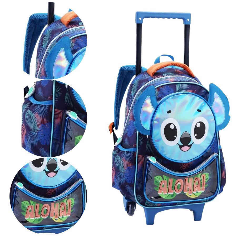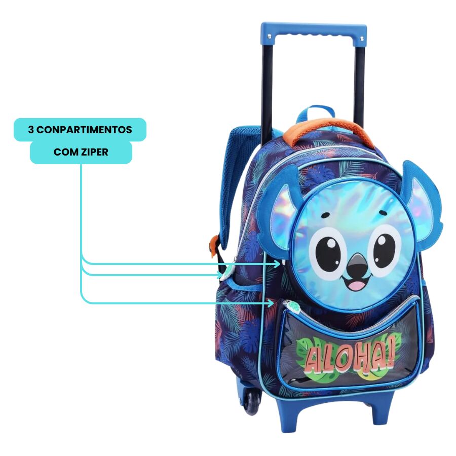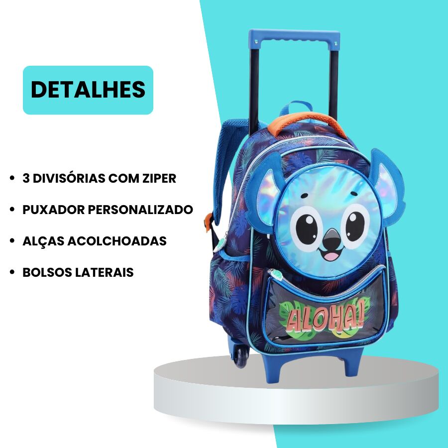 Mochila Infantil Denlex Aloha DL2043 Masculino – Rodinhas, Resistente e Divertida
