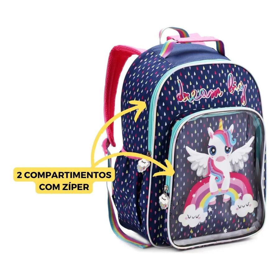 Seu design moderno encanta desde o primeiro olhar, trazendo a magia do universo infantil para o dia a dia. Além disso, a mochila infantil dream oferece o espaço ideal para cadernos, estojo, agenda, lancheira e até mesmo um tablet individual, garantindo funcionalidade completa durante todo o ano letivo.