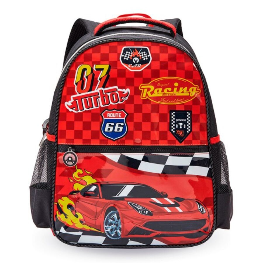 O design da mochila infantil racing DL1780 é um dos seus maiores diferenciais. A estampa frontal traz um carro de corrida estilizado, em vermelho vibrante, com elementos gráficos como bandeira quadriculada, números esportivos e símbolos clássicos das competições automobilísticas.
