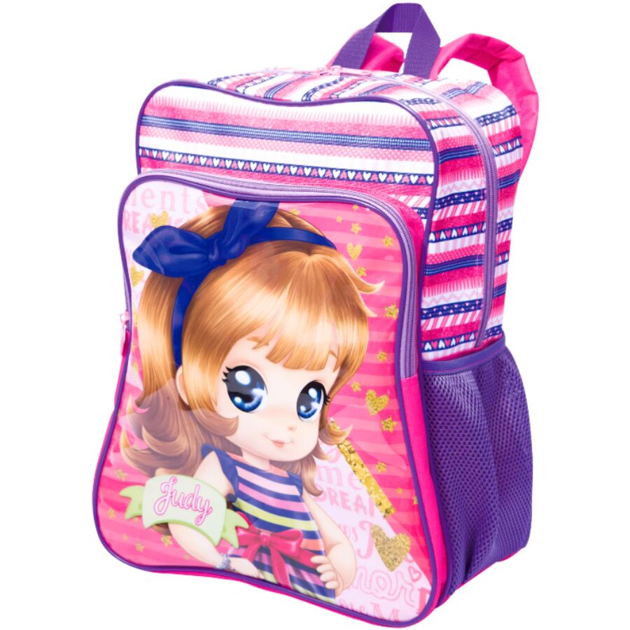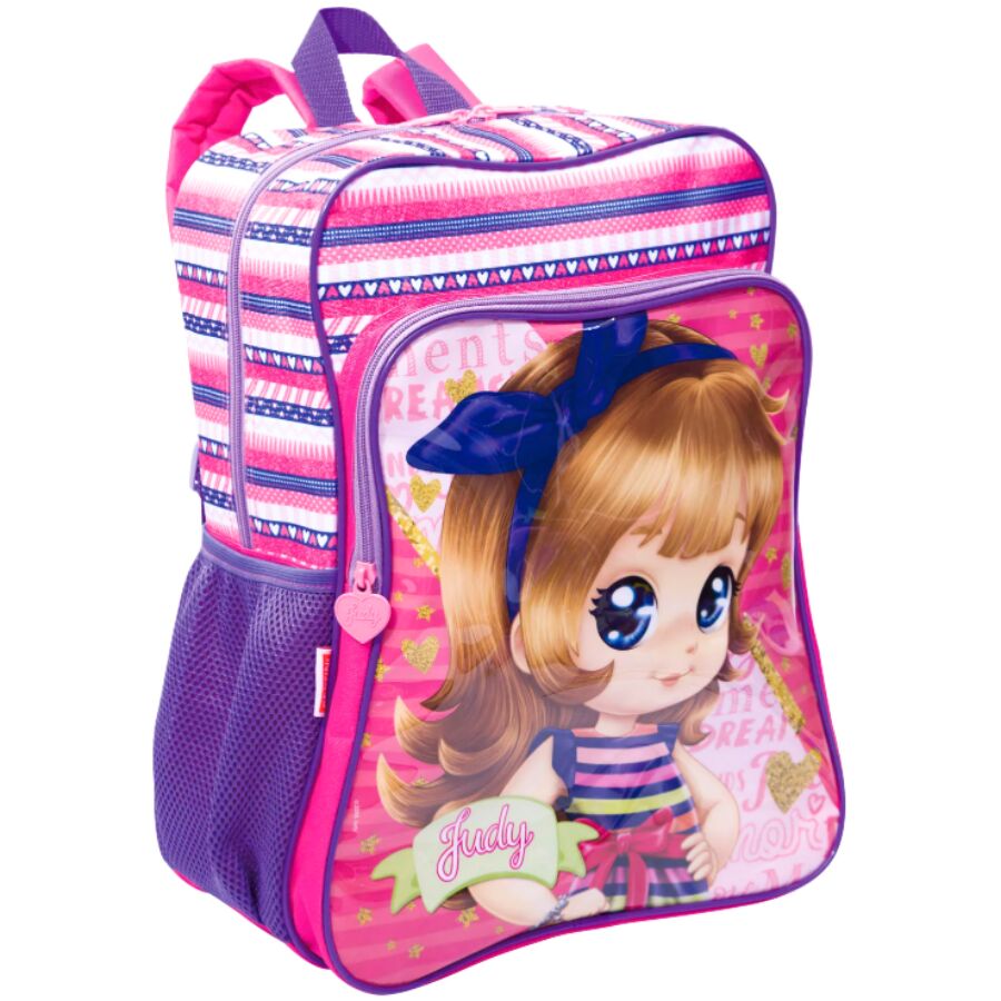 Mochila Judy Infantil Sestini com bolsos laterais, bolso frontal e alças acolchoadas. Modelo leve e resistente ideal para volta às aulas. Confira!