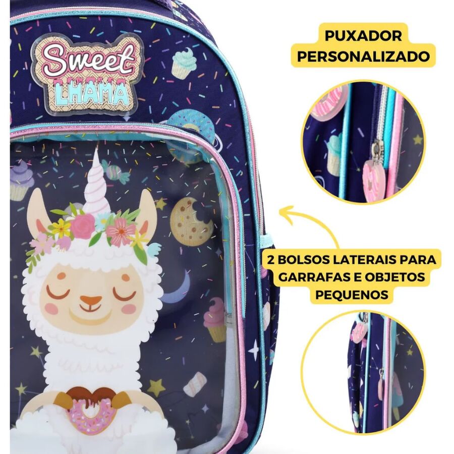 A mochila lhama infantil modelo Sweet Lhama DL1727 é uma das opções mais encantadoras do universo infantil. Com estampa super fofa de uma lhama estilizada com elementos mágicos e cores vibrantes, ela conquista rapidamente o coração das meninas que adoram personagens doces, divertidos e cheios de personalidade.