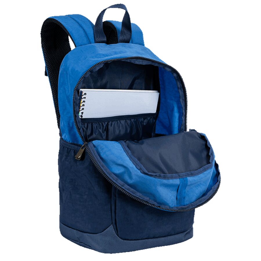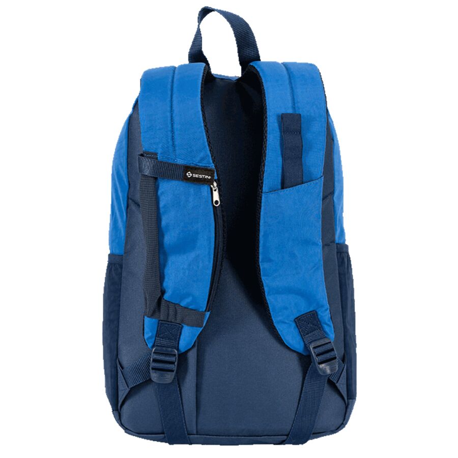 A mochila-sestini-magic-crinkle-2-double-azul é ideal para escola, faculdade, viagens curtas e uso urbano.