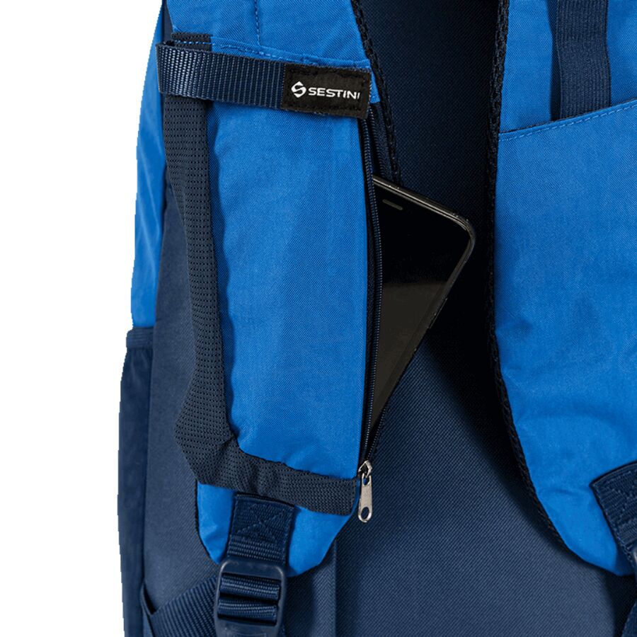 🖼️ Alt-text: mochila-sestini-magic-crinkle-2-double-azul vista frontal mostrando os tons azul e marinho e o logo Sestini em destaque.