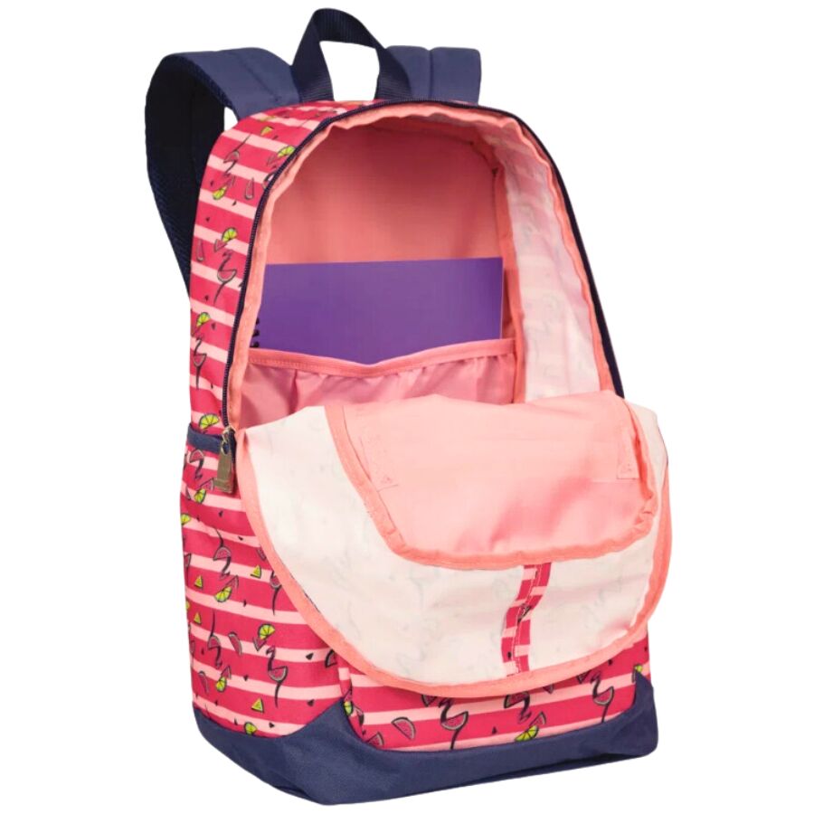 O interior da mochila-sestini-magic-flamingo é espaçoso e bem estruturado, ideal para quem precisa unir organização, conforto e estilo em um só produto.