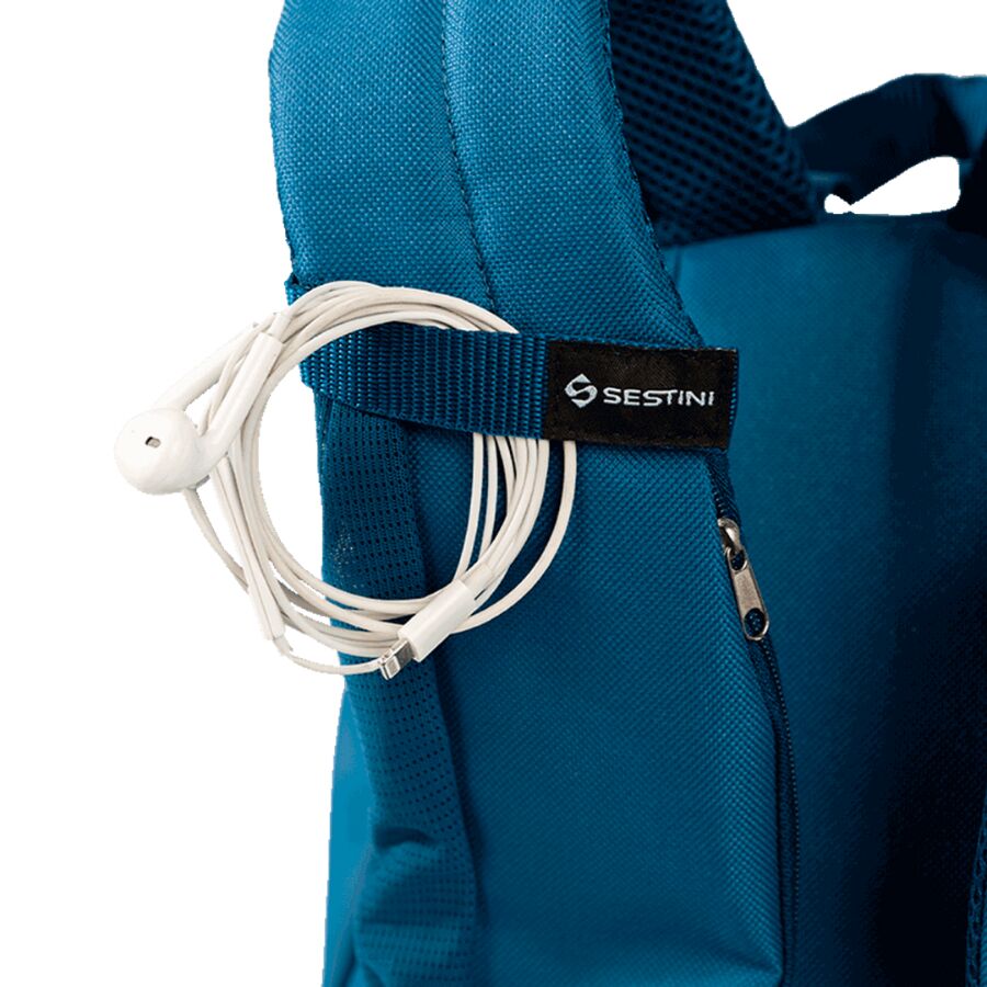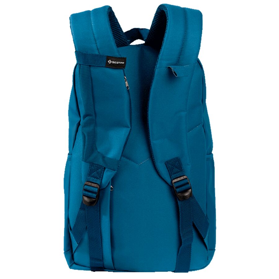 🖼️ Alt-text: detalhe das alças acolchoadas e logo Sestini na mochila-sestini-magic-hydroblock-azul-noturno.