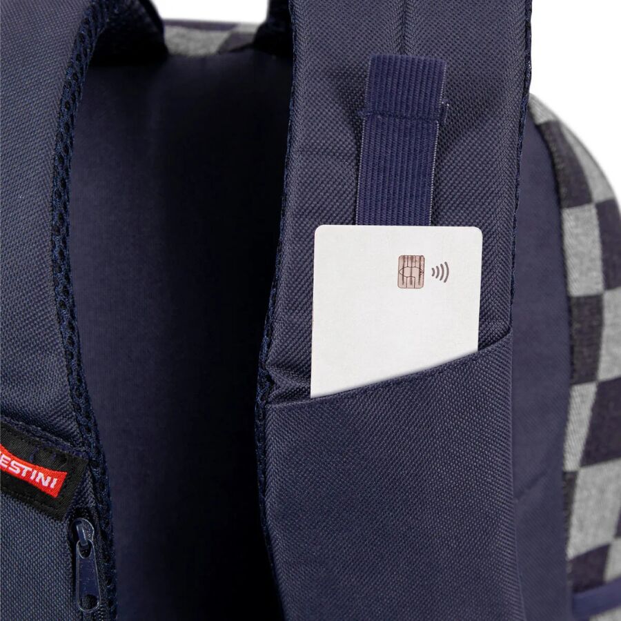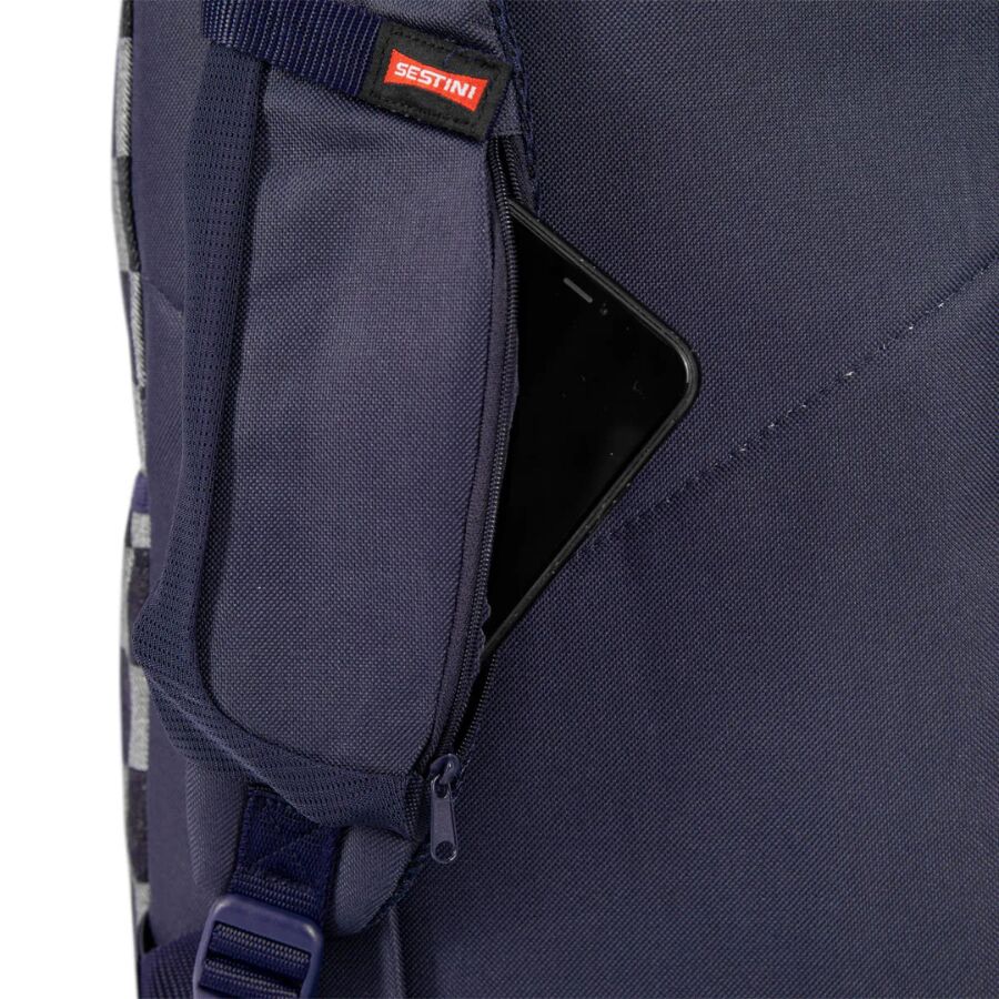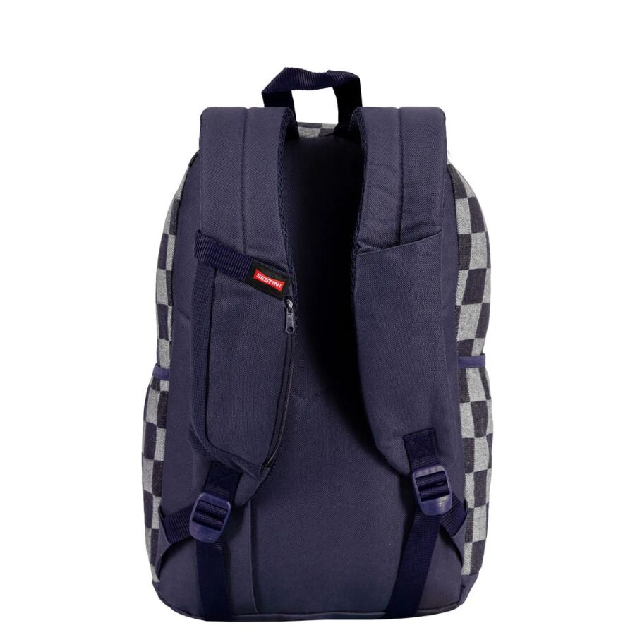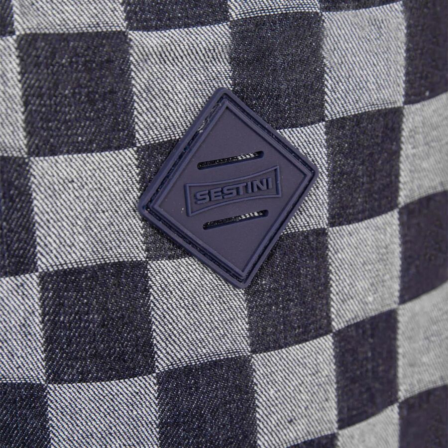 🖼️ Alt-text: logotipo Sestini em destaque na mochila-sestini-magic-jeans-xadrez-azul.