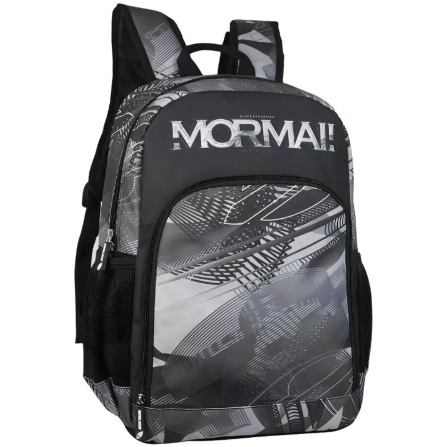 Com acabamento preto e cinza e o logo Mormaii em destaque, ela combina perfeitamente com o dia a dia escolar, universitário ou casual, oferecendo espaço interno generoso e conforto no transporte de materiais e eletrônicos.
