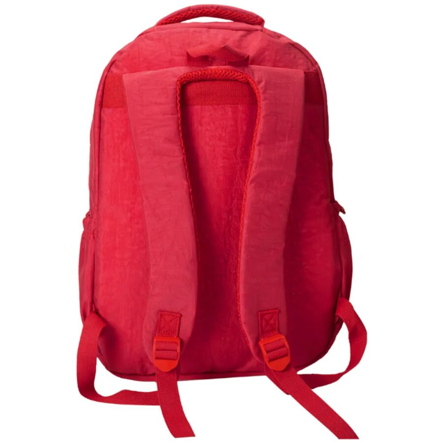 A Mochila Pack N’Go Crinkle Vermelho possui dois compartimentos amplos, bolso frontal, bolsos laterais, alças acolchoadas e material altamente resistente.