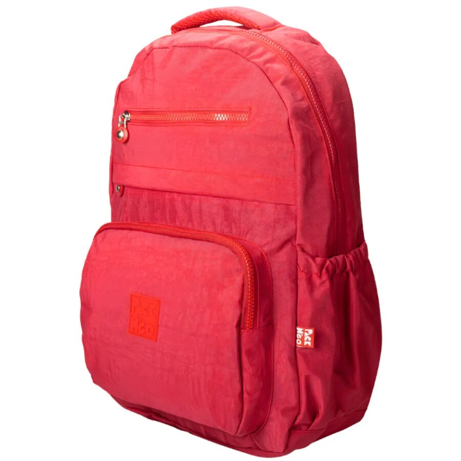 Mochila pack N go vermelha com 2 compartimentos, material crinkle resistente e alças acolchoadas. Modelo escolar espaçoso, durável e perfeito para uso diário!