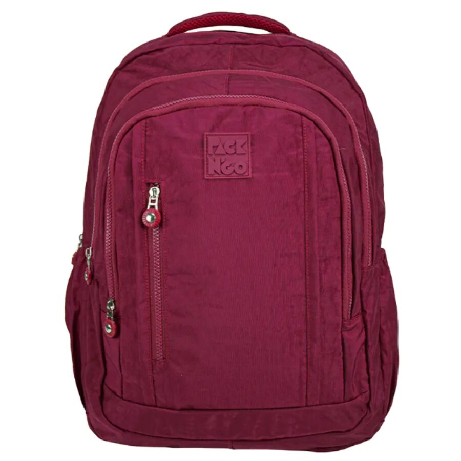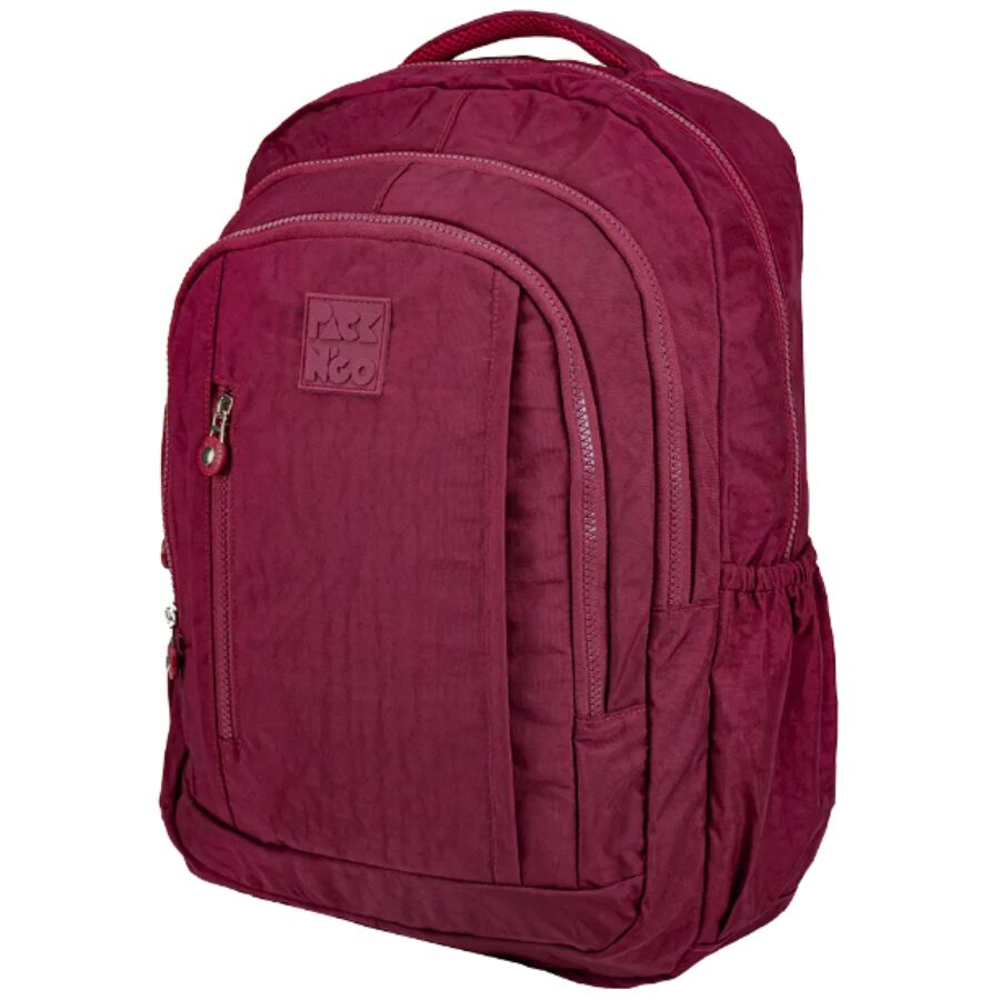 Mochila pack N`Go vinho com 3 compartimentos, nylon crinkle resistente e alças acolchoadas. Conheça todos os detalhes deste modelo ideal para escola e uso diário!