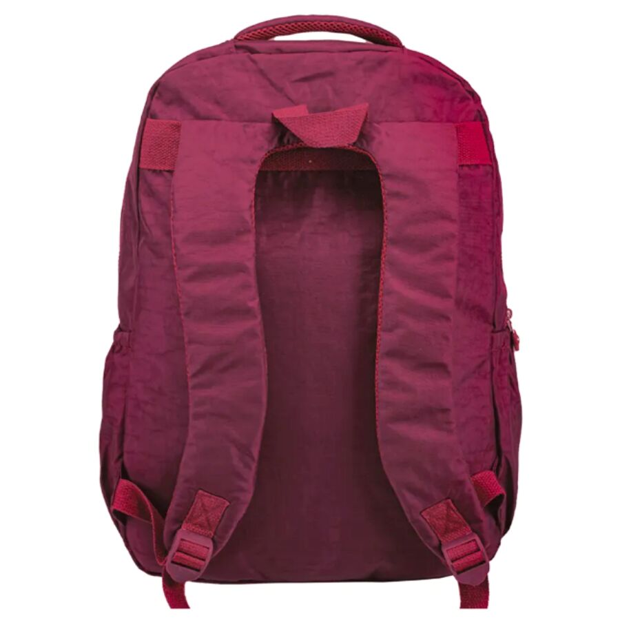A Mochila Pack N’Go Crinkle Vinho possui três compartimentos amplos, bolsos laterais, alças acolchoadas e material resistente, ideal para escola, trabalho e uso diário.