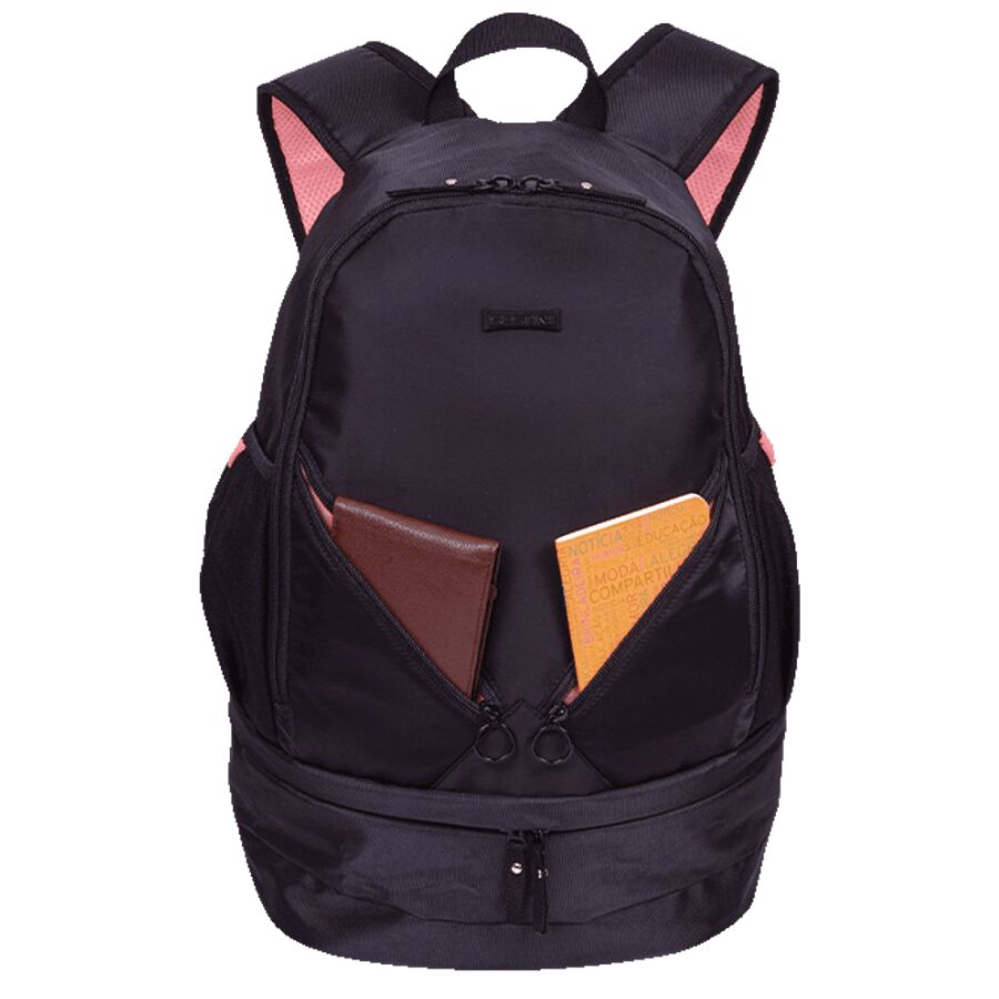 - Compartimento porta tênis na parte inferior com zíper próprio