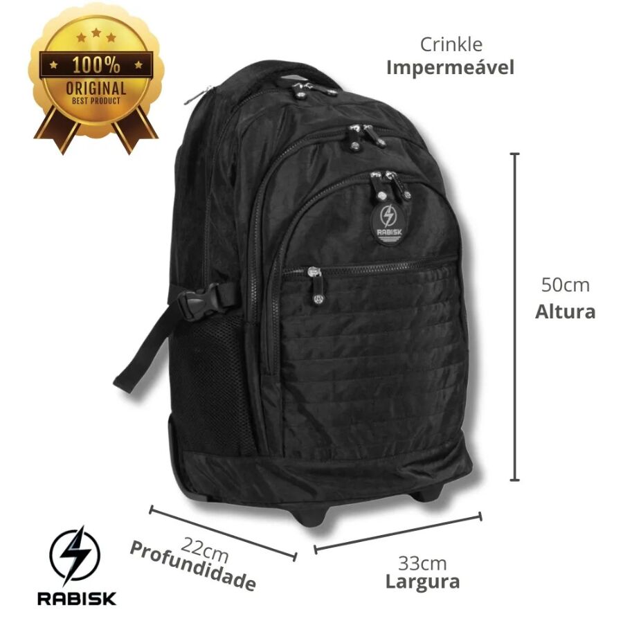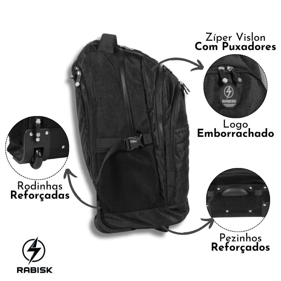 mochila preta de rodas | Rabisk RK4210 Resistente e Espaçosa