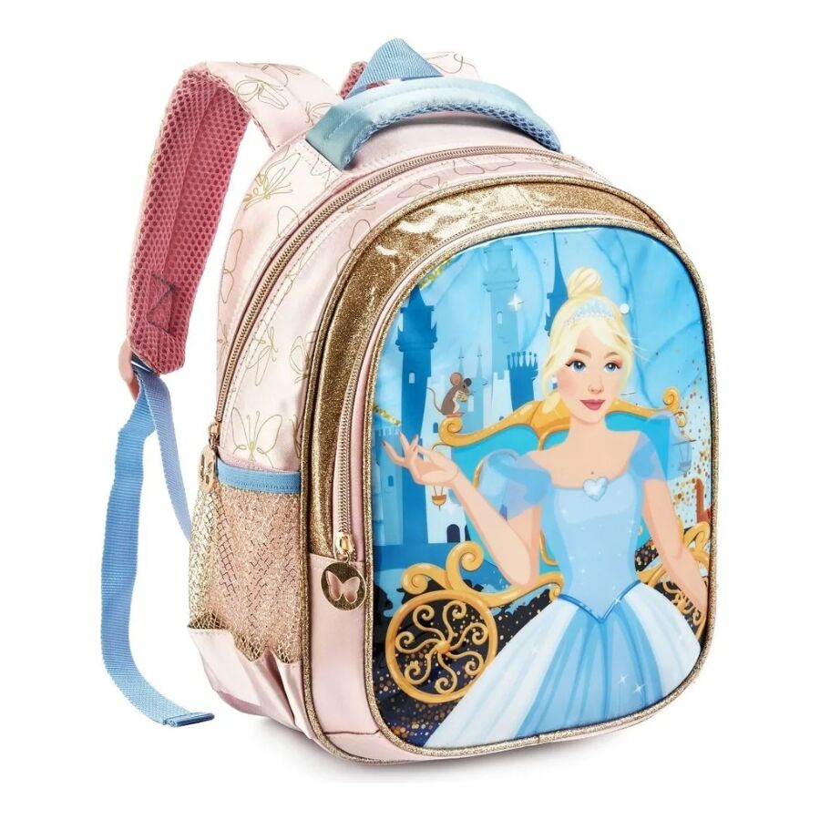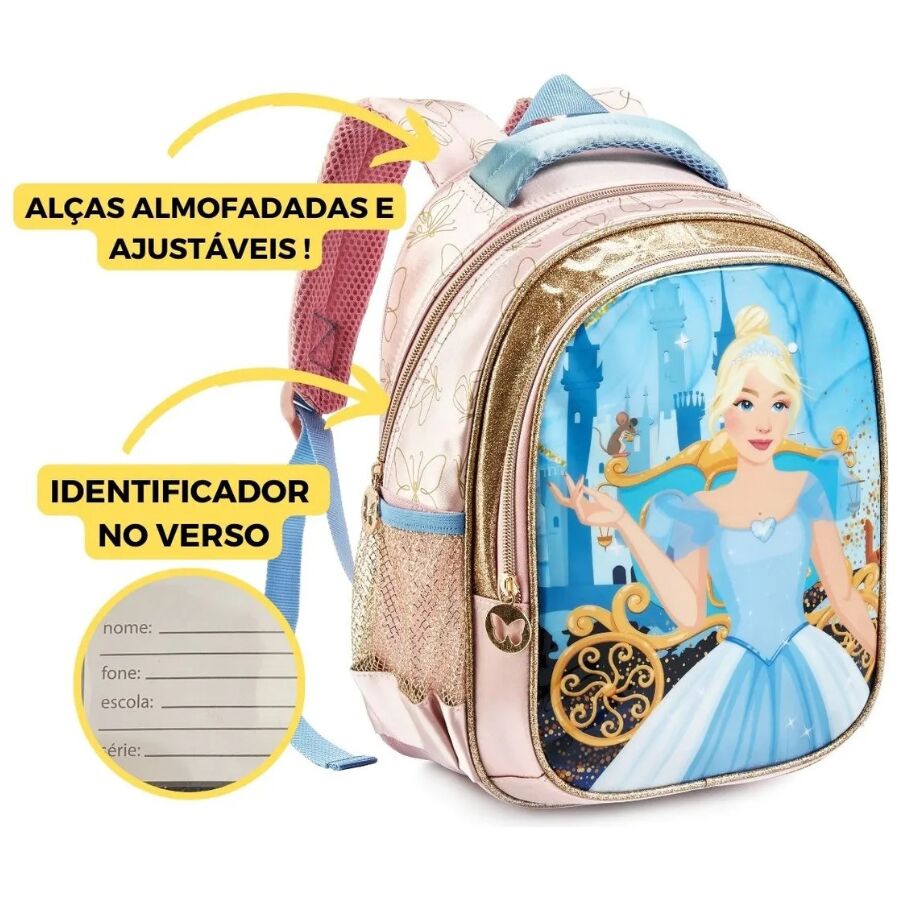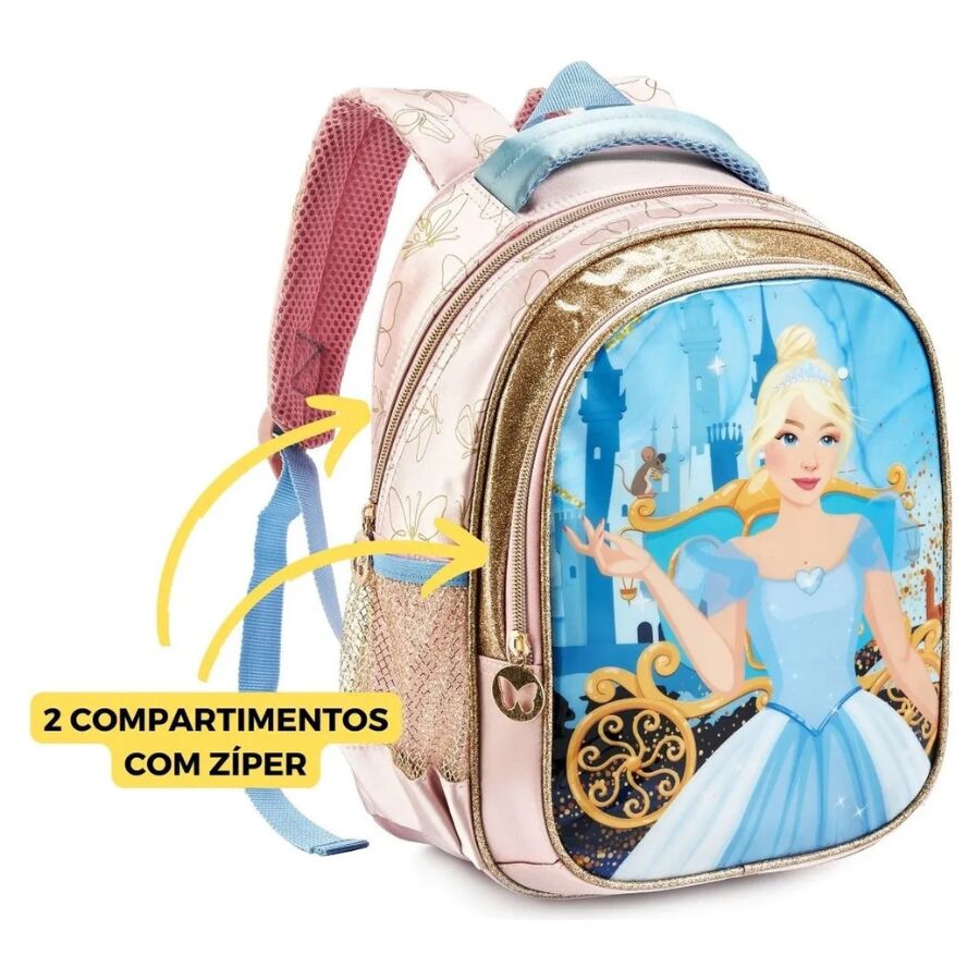 A estética da mochila princesa infantil é seu maior destaque. O modelo apresenta: