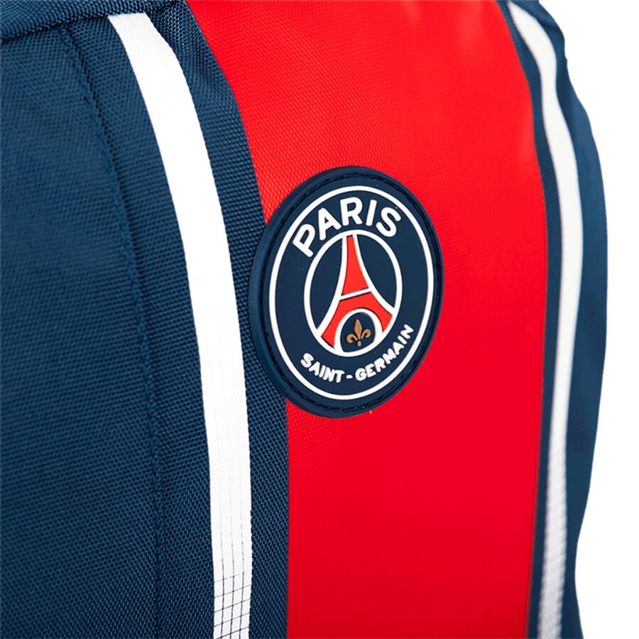 O escudo oficial do Paris Saint-Germain está presente na parte frontal, reforçando a identidade premium e autêntica do produto.