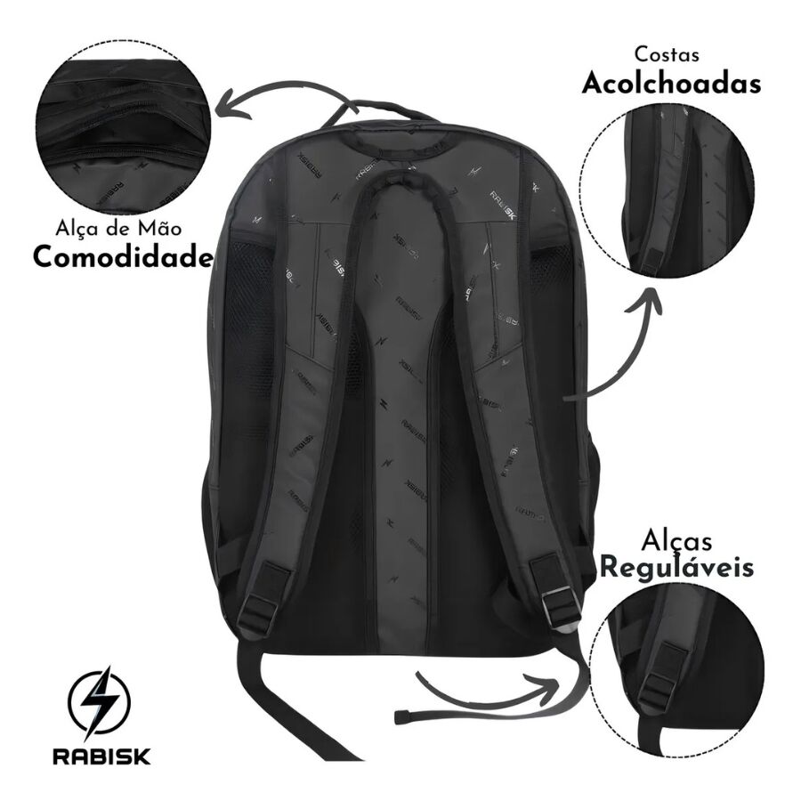A mochila rabisk preto rk2490 segue esses diferenciais com excelência.