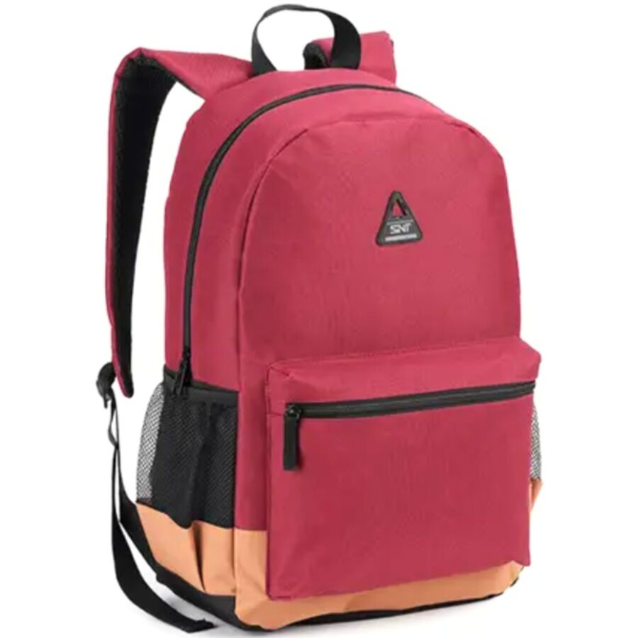 O design da mochila Seanite MJ40528 chama atenção pela combinação harmoniosa de cores e visual clean. A cor vermelha, com detalhes em tons suaves como pêssego, traz personalidade ao visual escolar sem perder a elegância. A estética é moderna, minimalista e atrativa, podendo ser usada tanto por adolescentes quanto por adultos que preferem mochilas básicas, mas bem acabadas.