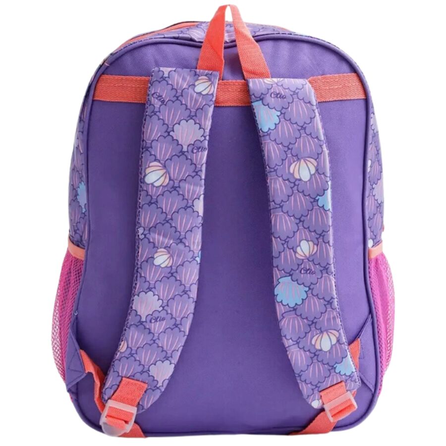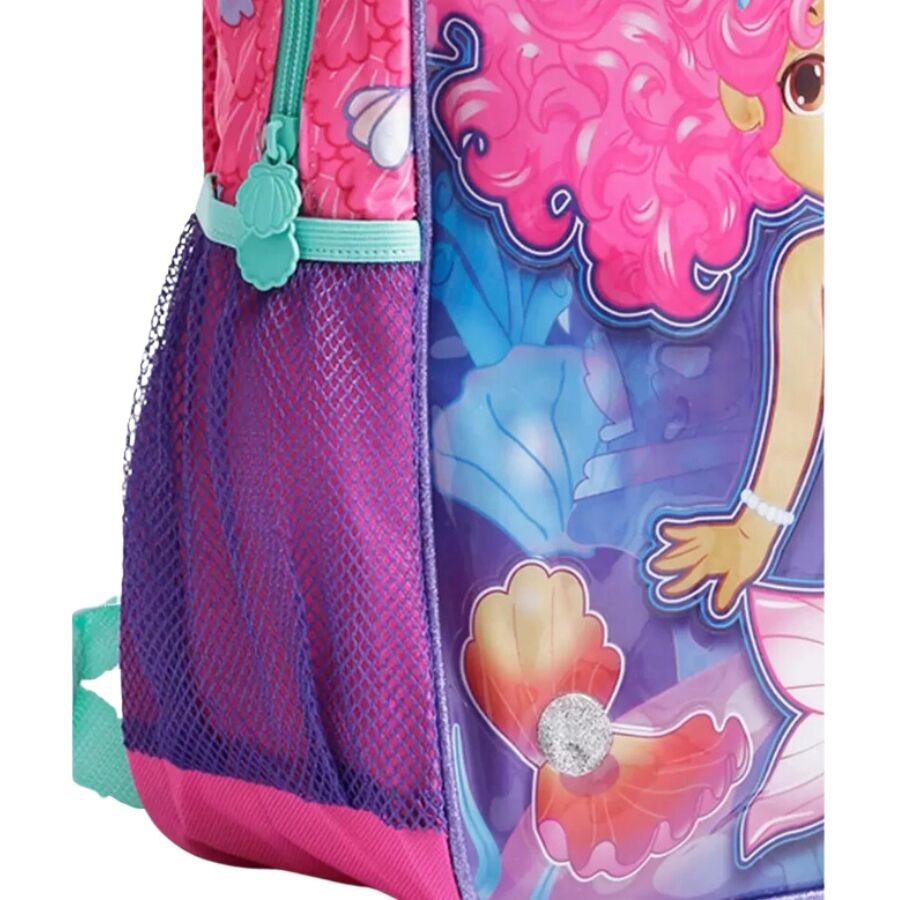 Mochila Sereia Infantil Clio com bolsos laterais, estampa vibrante e material resistente. Ideal para volta às aulas. Confira na Papelaria Maranata!