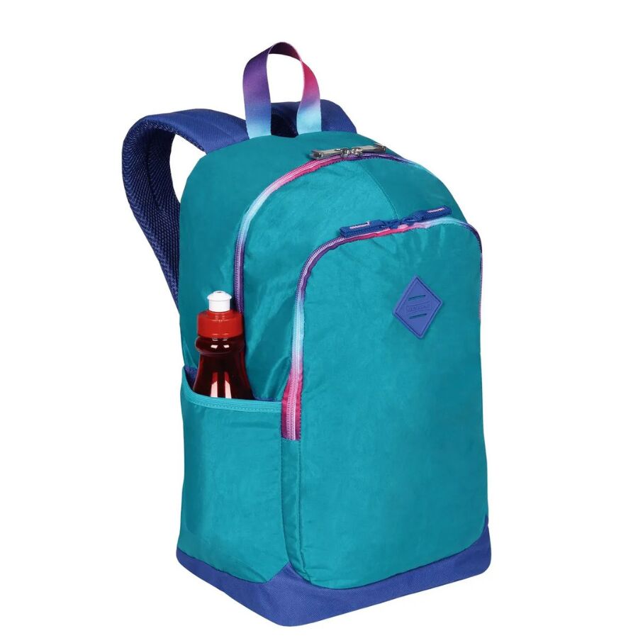 A mochila-sestini-magic-azul se destaca pelo seu design degradê exclusivo, que combina tonalidades suaves de azul-turquesa, lilás e roxo.