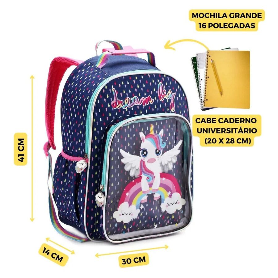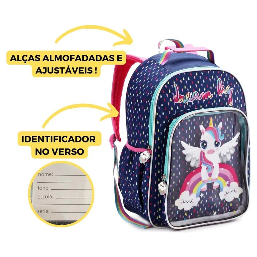 A Mochila Unicórnio DL1444 Infantil Denlex combina fantasia, conforto e resistência em um único produto. Ideal para volta às aulas, ela oferece excelente capacidade interna, alças macias e uma estampa encantadora que conquista qualquer criança.